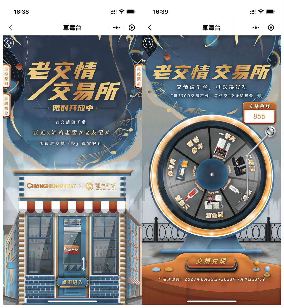 “破茧成蝶”,本次长虹X泸州老窖联合推出【老交情交易所】,以H5传播模式,依托小程序游戏、诙谐情景剧等形式,实现全国海量投放,多平台互联互通,创意传承与用户间的老友情,由此引发的相关话题讨论。有不少网友纷纷晒出家里长虹牌老物件,分享记忆中的泸州老窖,一波回忆杀唤醒了两大国民品牌与国民之间的相伴相守的难忘岁月。一场场别具匠心的创意活动在线上线下同时展开,不论是【老交情交易所】组合消除小游戏还是【老交情交易所爆笑剧场】的全民互动演绎,“老交情换好礼”,不仅是对用户的回馈也是拉近与用户的沟通距离,是长虹与泸州老窖对老用户朋友的一路陪伴的感谢,也是展现出满分诚意邀请新用户朋友加入这个大家庭。