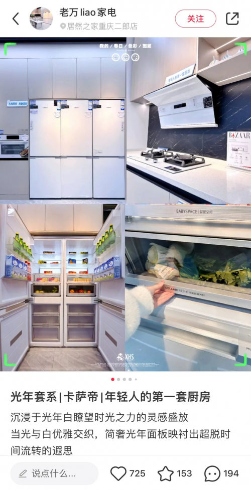 装修前先问问小红书,已逐渐成为现在大多数年轻人的习惯——在设计阶段就提前预留出家电嵌入的位置,实现「家电家居一体化」;针对重点场景做「套系化」设计,让居家生活变得既舒适又美观……