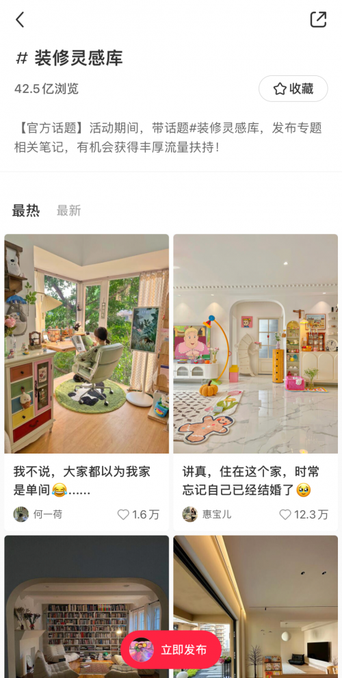 *用户们将小红书变成了自己的#装修灵感库,相关话题浏览量超42.5亿次。不仅在小红书搜寻家居家装、数码家电的参考选项,更将自己的真实经验分享给更多人,截止2023年6月,站内家居家装内容同比2021年增长超过440%、搜索增长超过200%。