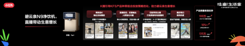 站内直播也是带动生意增长的重要路径。以碧云泉N9净饮机为例,小红书将直播作为增长的核心触点,播前2个月持续KFS蓄水、为品牌匹配优质主播、打造高端专场直播间,直播前后反复触达潜力人群强化产品兴趣、延长品牌热度。小红书帮助碧云泉N9实现618单场100万+GMV的好成绩,更将直播事件的爆点拉长,为产品在站内沉淀下长尾影响力。