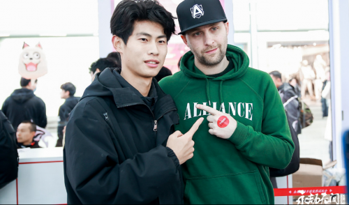 更让玩家们感到惊喜的是:来现场的不光有cos圈的名人,电竞界、说唱界、体育节甚至商界的名人都纷纷前来,让人直呼不虚此行。DOTA2传奇巨星Loda亲临现场,饶有兴致地观看书法大师在纪念折扇上挥毫泼墨,还亲自试玩了一把。Tryhard、HyperNova等永劫无间端游的海外人气选手,也在试玩区激情开战。