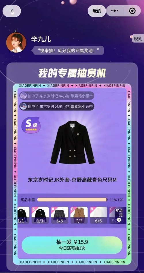 在私域粉丝运营上,有专业的运营团队辅助KOL,提供多种推广、沉淀粉丝的玩法和工具,比如通过群裂变进行传播,进入小鹅种草号后,还会有一番赏等活动加强用户互动。在抽赏大玩家这类游戏中,通过抽奖吸引客户消费或者关注KOL,其中货品池子也由平台提供,KOL十分省心。