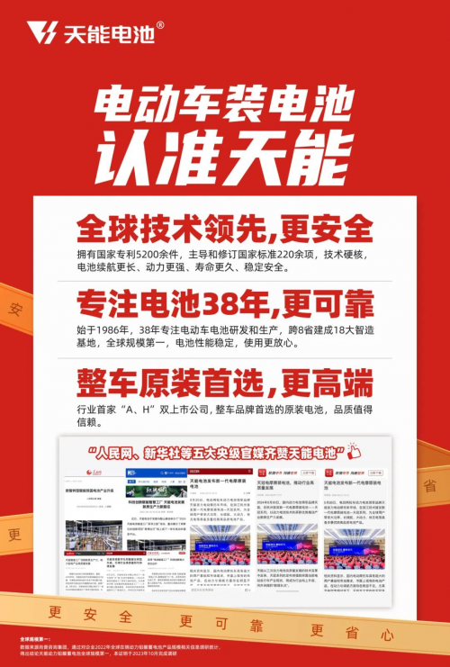 天能率先开发高性能铅碳电池绿色制造关键技术,自主研发微纳级铅碳复合先进电极材料,通过微纳铅碳关键技术有效减少电池内阻,大幅提升电池使用安全;率先将阻燃ABS材料应用到电池塑壳,电池难燃性达到UL94防火标准,击碎电池鼓包问题;率先应用数字技术和人工智能等先进科技,实现电池全周期在线监控充电,电池一致性高达99.92%,电池更具安全可靠性……天能坚定守护4亿电动车用户出行安全。